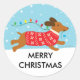 Dackel Hund im Schnee Frohe Weihnachten Runder Aufkleber