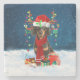 Dackel Hund im Schnee mit Weihnachtsgeschenken Steinuntersetzer
