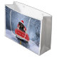 Dackel Hund im Schnee sitzen im Weihnachtswagen Große Geschenktüte