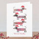 Adorable kleine Weihnachts-Dackel Dackel oder Wursthunde in gemütlichen Wintermode und Weihnachtsmannmützen. Anpassen, indem Sie die Grüße vorne und innen ändern, und die Namen ändern oder entfernen.