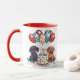Niedliche Darstellung von Dackel-Hunden, die zum Geburtstag verkleidet sind. Perfekt für Liebhaber von Haustieren oder Hundeeltern!