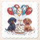 Niedliche Darstellung von Dackel-Hunden, die zum Geburtstag verkleidet sind. Perfekt für Liebhaber von Haustieren oder Hundeeltern!