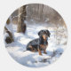 Dackel lässt es Weihnachten schneien Runder Aufkleber