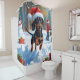 Dackel läuft im Schnee mit Weihnachtshut Duschvorhang
