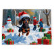 Eine spielerische Dackel läuft durch die schneebedeckte Winterlandschaft und trägt einen festlichen Weihnachtshut. Dieses charmante Design hebt den langen Körper der Rasse, die kurzen Beine und die gefühlvolle Persönlichkeit hervor und erweckt gleichzeitig die Wärme und Freude der Ferienzeit. Ein schöner Wintermoment voller festlichen Beifall.