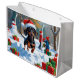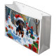 Dackel läuft im Schnee mit Weihnachtshut Große Geschenktüte