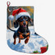 Dackel läuft im Schnee mit Weihnachtshut Großer Weihnachtsstrumpf