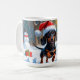 Dackel läuft im Schnee mit Weihnachtshut Kaffeetasse