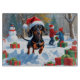 Eine spielerische Dackel läuft durch die schneebedeckte Winterlandschaft und trägt einen festlichen Weihnachtshut. Dieses charmante Design hebt den langen Körper der Rasse, die kurzen Beine und die gefühlvolle Persönlichkeit hervor und erweckt gleichzeitig die Wärme und Freude der Ferienzeit. Ein schöner Wintermoment voller festlichen Beifall.
