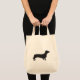 Leinwandtasche, die eine schwarze Dackel-Silhouette kennzeichnet.