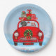 Dackel mit dem Weihnachtsmann im Auto Pappteller