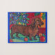 Diese Grafik einer Dackel ist eine Acrylmalerei durch Lori DeLeonardis-Aman. Sie macht ein schönes Puzzlespiel für Hundeliebhaber alles Alters.