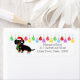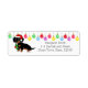 Black and Tan Dackel Cartoon Weihnachtsadresse Labels für Dackel Fans!! Eine Niedliche Dackel kaut heiliges Blatt mit seiner Weihnachtsmannmütze!! Bunte Ornamente im Hintergrund. Sie können Text und mehr anpassen! Einzigartige und lustige Hundekunst von Naomi Ochiai aus Japan.