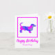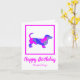 Dackel hackt Hunde Silhouette in verrückt heiß rosa und blau hell modernen abstrakten Muster. Die lustige Geburtstagsnachricht kann auf alles, was Sie gewollt haben, geändert werden. Personalisieren Sie die Daxie-Karte mit dem Namen auf der Vorderseite.