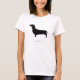 Dackel-Silhouette im Schwarzen auf einem T - Shirt. Entwerfen Sie verfügbares in einer Vielzahl von Farben, über 170 verfügbarer Hundezucht. Karo mein Speicher für mehr!