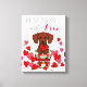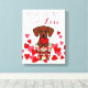 Einzigartige und lustige Dog Art gemalt von Naomi Ochiai aus Japan. Niedliche und lustige Dackel Cartoon Geschenkartikel für Dackeln Fans!! Ein bezaubernder, rot-glatter Dackel-Welpe, der Ihnen ein niedliches Herz bringt. Rot und Herz für den Valentinstag!!