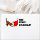 Niedliche kleine Dackel hat seine Nase im Hut des Weihnachtsmannes für ein schlaues und einzigartiges Retourenschild für Ihre Urlaubssendungen. Auch Design kann auf Versandetiketten übertragen werden.