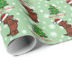 Niedliches und lustiges Dackel-Cartoon-Verpackungspapier für Dackel lockert! auf! Ein entzückender roter glatter behaarter Dackelwelpe sitzt oben mit seiner/Weihnachtsmannmütze!! Heitrer Weihnachtsentwurf. Sie können Text und mehr besonders anfertigen! Helles tadelloses Grün- und Schneeflockemuster. Einzigartiger und wunderlicher HundeCartoon geschaffen von Naomi Ochiai von Japan.