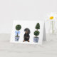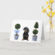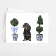 Diese Grußkarten zeigen ein Aquarellbild einer Dackel, die zwischen zwei Chinoiserie-Styleshows sitzt.