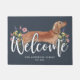 Diese einzigartige rot-braune Dackel Türmatte ist eine unterhaltsame Ergänzung zu Ihrer Haustür. Das Design verfügt über eine niedliche Aquarell-Dackel-Abbildung, kombiniert mit Wildblumen und einem trendigen Script-Schriftart. Ideal für die Frühlings- oder Sommerdekoration im Freien. Personalisieren Sie sich einfach mit Ihrem Familiennamen und Jahr.