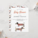 Mit einer lustigen Dackel-Dackel oder einem Sausage Hund-Design, das perfekt für die Kinderdusche eines Tierfreundes ist. Sie können die Einladung an Ihre Wünsche anpassen, indem Sie den Text ändern. Ideal für eine geschlechtsneutrale Babydusche. Originelle Kunst von Nic Squirrell.