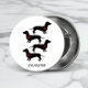 Tragen Sie Ihre Liebe für Dackeln stolz mit dieser Taste mit niedlichen kleinen schwarzen Dackeln, auch bekannt als Dackel Hunde, Wursthunde, Dackeln oder Badger Hunde. Diese kleinen Hunde sind mit einem kleinen roten Herz auf den Truhen geschmückt. Personalisieren Sie dieses Design, indem Sie einen Namen oder ein Monogramm hinzufügen und so eine wirklich einzigartige und spezielle Schaltfläche erstellen. Dieser Button ist ein Muss für Hundeliebhaber und Hundeschlittengänger, mit dem Sie Ihre Zuneigung für diese bezaubernden Hunde überall auf der Welt präsentieren können. Egal, ob Sie an Hundeveranstaltungen teilnehmen, Ihre Zornfreunde unterstützen oder einfach nur eine Touch Kutschigkeit zu Ihren Outfits hinzufügen, dieser Button ist die perfekte Wahl. Überraschen Sie jemanden, der etwas Besonderes ist oder sich selbst Leckerei auf diesen Knopf zum Thema Dackel gibt, ein stilvolles und bedeutendes Geschenk, das eine Hangkunst mit modischem Flair verbindet."