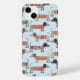 Niedliche kleine Dackel Würstchen oder Dackel Hunde in Wollstrickbekleidung. Ideal für Hundeliebhaber und Hundeschlittengänger. Originelle Kunst von Nic Squirrell.