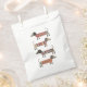 Niedliche kleine Dackel Würstchen oder Dackel Hunde in Wollstrickbekleidung. Ideal für Hundeliebhaber und Hundeschlittengänger.