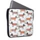 Niedliche kleine Dackel Würstchen oder Dackel Hunde in Wollstrickbekleidung. Ideal für Hundeliebhaber und Hundeschlittengänger.