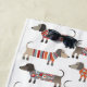 Niedliche kleine Dackel Würstchen oder Dackel Hunde in Wollstrickbekleidung. Ideal für Hundeliebhaber und Hundeschlittengänger.