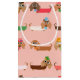 Niedliche Dackeln auf rosa kleiner Dackel der Ausrüstungsbeschreibungen verfolgt tragende Strickjacken, Augengläser, Bögen und sogar Spitzenhüte auf einem Hintergrund des Rosas. Diese niedlichen Dackelhundeentwurfseinzelteile umfassen Hundebetten, AcrylServiertablette, Bad-Sets, Flaschen, Lautsprecher, Teller, Nachtlichter, Mittagessenkästen, Käsebretter, Geschenkboxen und Taschen, Flaschenöffner und soviel mehr!