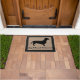 Dackeln begrüßen Fußmatte mit einem Imitatleinwand Druckhintergrund, schwarze Ränder, und ein schwarzes Dackel-Würstchen verfolgen Silhouette.