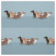 Dieses Kunstwerk enthält eine Gruppe von vier niedlichen Cartoon Dackeln, die gemeinsam stehend sind. Die Hunde haben verschiedene Haarfarben. Die Cartoon-Abbildung ist perfekt für diejenigen, die Hunde und Cartoons Liebe.