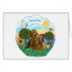 Es ist ein glücklicher Tag im Land mit einer lächelnden Sonne, hübschen Blume, einer Taube über dem Kopf und zwei rot-braunen Dackeln sitzen im weichen smaragdgrünen Gras, während die sanften Brisen blasen.