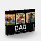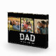 Dad Established Bold White Modern Varsity Lettering 3 Photo Design. This is designed especially for the Dad who has become a Dad multiple times! Customize for his Dad Name, each year a child was born, and Add Your Own 3 Photos. This is a Great Personalized Gift for that Dad who's just become a Dad "again!"