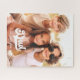 Jig saw puzzle featuring your custom photo and the text "Dad, we love you" and little white hearts.