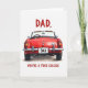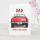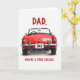This lovely image shows a bright red convertible car, seen from the back, standing out against a pure white background. The picture is done in a charming watercolor style, creating a sweet and heartfelt feeling perfect for a cherished moment. The car shines in a deep red color, with shiny chrome details on the bumper and exhaust, giving it a classy look. Small touches like the brown convertible top and wooden steering wheel add a vintage touch to the scene. The word "DAD" in bold handwriting stands above the car, with "DAD" also written on the license plate. A cute red heart sticker on the bumper adds a loving touch. Underneath the car, the words "YOU'RE A TRUE CLASSIC" round out the message, making it a warm and nostalgic tribute. This card is a great way to express Valentine's Day sentiments ❤️💌🍫.