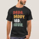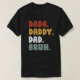 Dieses Design ist mit einem schwarzen T - Shirt mit den Begriffen "DADA.", "DADDY.", "VATER." und "BRUH." versehen, die vertikal in einem stilisierten Schriftart mit verschiedenen Farben gestapelt sind.