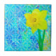 Diese Keramik Kachel zeigt eine digitale Collage aus mehreren Ebenen von Gemälden, Texturen und Scans. Die sonnige Sommerdiele "Pop" von der blauen Kulisse.
