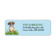 Die links Seite dieser Rücksendeadressen-Aufkleber zeigt einen bezaubernden Boxer Welpenhund, der in einem Garten mit blühenden Blume und grünem Blattwerk sitzt. Rechts befindet sich Ihr benutzerdefinierter Text in grün und schwarz. Alles ist auf einem hellblauen Hintergrund platziert.