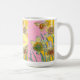 Handgemalte, gelb rosafarbene, blumenreiche Tasse mit einem vollständig anpassbaren Damennamen. Ein wunderschönes Blumendesign in Aquarelltönen. Entworfen aus meinen ursprünglichen Aquarellbildern, die ich aus meinem eigenen Blumengarten gemalt habe.