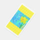 Dieses Gästetuch aus Papier zeigt eine digitale Collage aus mehreren Ebenen von Gemälden, Texturen und Scans. Die sonnige Sommerdiele "Pop" von der blauen Kulisse. Fröhliche gelbe und weiße Polka-Punkte bilden einen Rahmen oben und unten.
