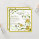 Ein sonniger, quadratischer Entwurf, der einen doppelten Rahmen mit den goldenen Narzissen keimen von der unten rechtsecke gegen einen weißen Hintergrund kennzeichnet. Es ist eine herrliche Einladung, die für Geburtstage, Duschen, Mittagessen, Abendessen-Partys, Verlobungen oder gerade über jede glückliche Gelegenheit passend ist.