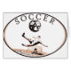 Dahjo präsentiert: Sportserie mit Spaß: SOCCER Ein Fußballspieler tritt den Fußball zum Tor. Im Hintergrund steht ein Torwart bei seinem Torposten.