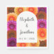 Die Herbstdahlie blüht in Gelb-, Orange-, Rot- und lila Farbtönen mit Text unter einem trendigen Bogen