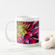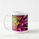 mit originellem Kunstdesign aus Aquarellmalerei von Rosa und lila nahem Fokus, Makro Dahlia Blume. Dieses helle und farbenfrohe Blumendesign zeigt die abstrakte Form der großen Blume mit gelbem Zentrum und wird den botanischen Kunstliebhabern überall gefallen.