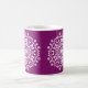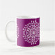 Dieses weiße Mandala sitzt auf einem lila, warmen Hintergrund. Die Farbe ist luxuriös und kreativ. Teil der Sammlung Mola Mandala.