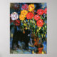 Dahlias und Black Cat, Kunstmalerei Poster