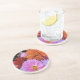 Erhellen Sie den Tag mit diesem prachtvollen Untersetzer, der eine Sammlung Wasserliliedahlieblüten in einem bunten Entwurf des Rosas, der Orange und des Rotes kennzeichnet.