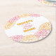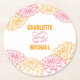 Diese PapierUntersetzer koordinieren mit der Dahliehochzeitsreihe und können mit Ihren Namen personalisiert sein. Kennzeichnet eine grafische Illustration der orange und rosa Dahlien.